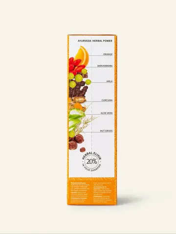 Состав: Aqua (Water), Coco-Glucoside, Glycerin**, Lauryl Glucoside, Caprylyl/Capryl Glucoside, Sodium Pca, Citric Acid, Limonene***, Xanthan Gum, Glyceryl Oleate, Oryza Sativa (Rice) Bran Oil, Parfum (Fragrance), Polyglyceryl-3-Caprate, Citrus Sinensis (Orange) Peel Oil Expressed, Disodium Cocoyl Glutamate, Sodium Benzoate, Zinc Pca, Coco-Caprylate, Potassium Sorbate, Hydrolyzed Wheat Protein, Guar Hydroxypropyltrimonium Chloride, Lecithin, Melia Azadirachta Seed Oil, Phytic Acid, Sodium Cocoyl Glutamate, Bacopa Monnieri Leaf Extract, Eclipta Prostrata Extract*, Berberis Aristata Root Extract*, Emblica Officinalis Fruit Extract*, Cyperus Rotundus Root Extract*, Acacia Concinna Fruit Extract*, Aloe Barbadensis Leaf Extract*, Butea Monosperma Flower Extract*, Sapindus Mukorossi Fruit Extract*, Sida Cordifolia Root Extract*, Linalool***, Trigonella Foenum-Graecum Seed Extract*, Curcuma Longa Root Extract*, Distearoylethyl Dimonium Chloride, Cetearyl Alcohol, Tocopherol, Hydrogenated Palm Glycerides Citrate..