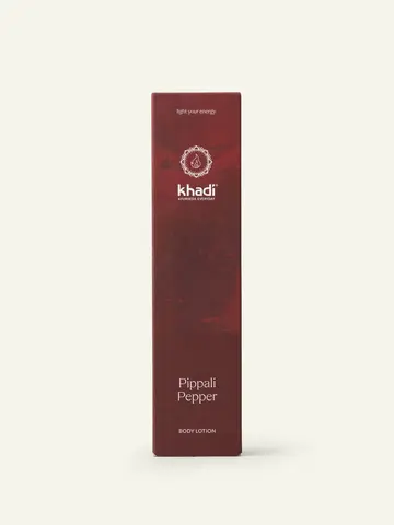 В Аюрведе пиппали (длинный перец) ценится за его стимулирующее и тонизирующее действие. Крем-лосьон для тела с перцем Khadi Pippali Pepper сочетает в себе пряный, теплый аромат черного перца с нотами кардамона, гвоздики и мускатного ореха. К этому добавляются ноты кедра, эвкалипта и мягкие акценты гваякового дерева и ванили. С каждым применением лосьона для тела Khadi Pippali Pepper вы ощутите мистическую ауру обновления и почувствуете, как энергия перца разжигает в вас страсть к жизни. Лосьон для тела Pippali Pepper сочетает в себе традиционный аюрведический принцип дош с инновационным уходом за кожей. Нежный тонизирующий бальзам на основе масла ши и пчелиного воска легко впитывается, обеспечивает коже интенсивное увлажнение и эффективно защищает ее от вредного воздействия окружающей среды. Даже сухая кожа после этого становится удивительно мягкой и эластичной.