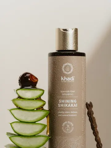 Благодаря аюрведической силе блеска шампуня-эликсира Khadi Shikakai: он наполняет волосы влагой и питательными веществами, разглаживает структуру волос и придает им естественный блеск.