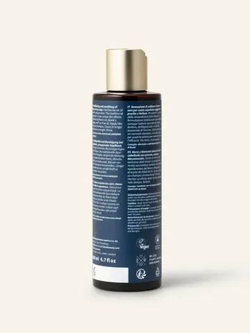 Состав: Aqua, Coco Glucoside, Lauryl Glucoside, Sodium PCA, Glycerin, Trigonella Foenum Graecum Seed Extract (Bockshornklee), Azadirachta Indica Leaf Extract (Neem), Vitex Negundo Leaf Extract (Mönchspfeffer), Acacia Concinna Pod Extract (Shikakai), Sapindus Mukurossi Fruit Extract (Reetha), Lawsonia Inermis Leaf Extract, Emblica Officinalis Fruit Extract (Amla), Indigofera Tinctoria Leaf Extract, Aloe Barbadensis Gel (Aloe Vera), Sodium Cocoyl Glutamate, Glyceril Oleate, Caprylyl/Capryl Glucoside, Citric Acid, Sodium Citrate, Rosmarinus Officinalis Essential Oil (Rosemary), Xanthan Gum, Hydrolyzed Sweet Almond Protein (Mandelprotein), Hydrolyzed Wheat Protein (Weizenprotein), Zinc PCA, Oryza Sativa Oil, Sodium Levulinate, Potassium Sorbate, Melaleuca Alternifolia Essential Oil (Teatree), Eucalyptus Citriodorata Essential Oil (Eucalyptus), Azadirachta Indica Oil, Linalool, Limonene.